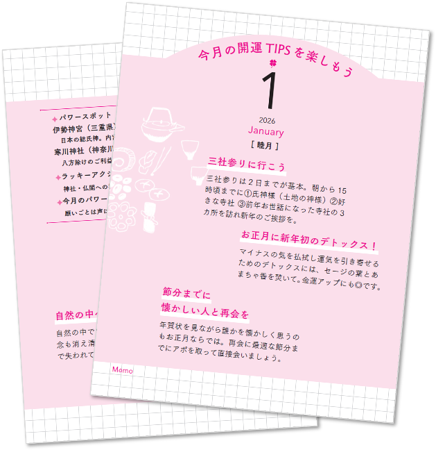 開運ポイントやラッキーアクション、その月のパワースポット、パワーワード、パワーストーン、ラッキーカラーなど、にしまりちゃんのメッセージが満載です四六判並製208ページのお守り手帳は持ち歩きやすく、書き込みスペースもたっぷりです。